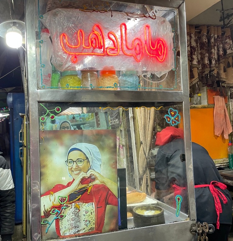 At the moment of our arrival, we were met with a huge crowd of customers, gathered around Mama Dahab who was standing in the center of the alley. Phones, cameras and the like were all raised and pointed at Mama Dahab as she answered her customers curious questions. The entire scene was akin to a celebrity promoting their film at a press release with Mama Dahab standing tall in her infamous get-up of a stark red apron and matching chef hat getting interviewed by multiple customers.