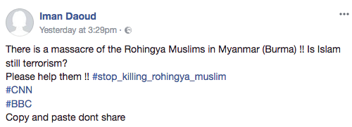 Over the past week, social media users have been sharing status updates and videos, pertaining to the treatment of Muslims in Burma. Indeed, the videos often contain footage of the horrid forms of torture (they are not shared in this article because they are extremely graphic) that Muslims in Burma are facing. Accordingly, the status updates condemn the general treatment of Muslims in Burma, and seek to bring attention to the mass killings of said Muslim group.