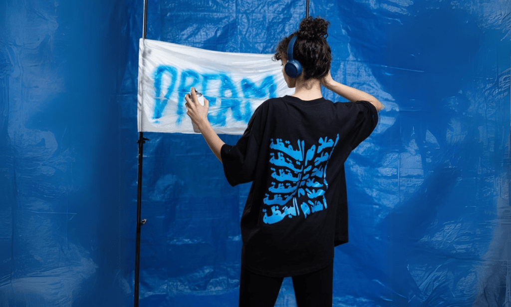 The collection is all about embracing art, creativity and self-expression. Some of their designs include black T-shirts depicting a skilled hand smoothly spinning a turntable with the words “put on some music” with the word “music” in Arabic. That is the mere essence of the brand.
