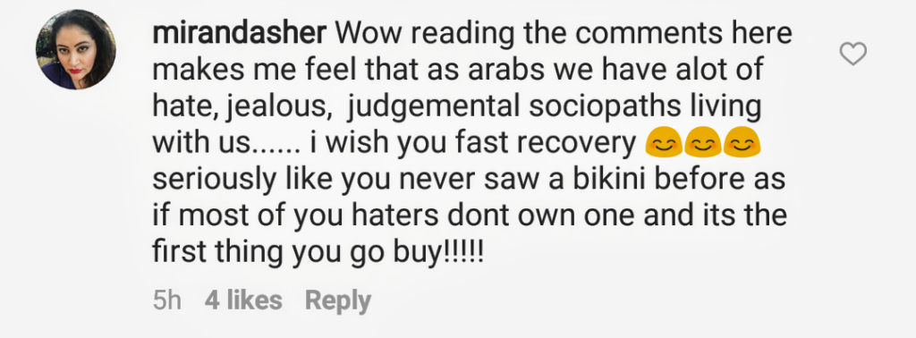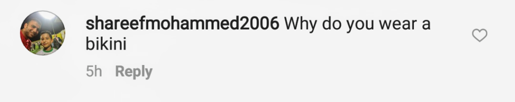 The comment section wars began when some users started to slut-shame Karim for wearing a bikini, and/or for posting a picture in which she was wearing one.