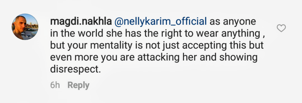 Karim has posted a picture of herself wearing swimsuits before; last October she posted pictures from what looked like a photo shoot in Egypt’s Ras Sudr, where she was clearly wearing a swimsuit. It seems, however, that what caused the immediate backlash this time was the fact that Karim was showing her entire body in Saturday’s post.