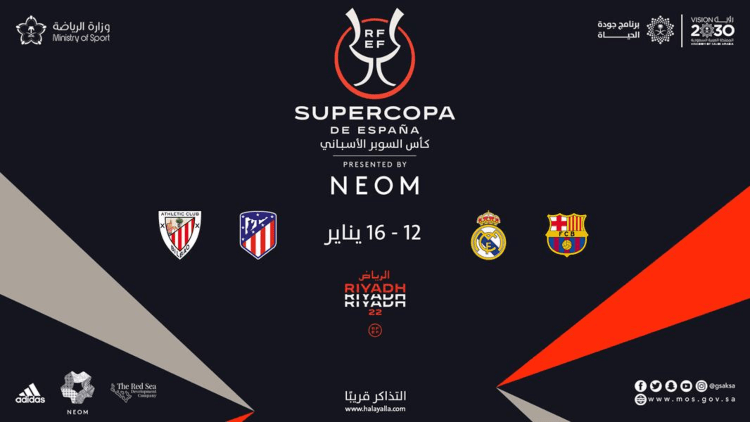 The Spanish Super Cup will be sponsored by NEOM and The Red Sea Development Company, according to the Kingdom’s Ministry of Sport, which confirmed the sponsorship on Wednesday. Atletico Madrid and Real Madrid, the La Liga champions and runners-up, and Barcelona and Athletic Bilbao, the Copa del Rey winners and runners-up, are the four clubs competing in the tournament.