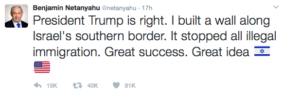 Immediately following the surprising tweet, Mexico’s government rebuked Israel and released a statement. “The Foreign Ministry expressed to the government of Israel, via its ambassador in Mexico, its profound astonishment, rejection and disappointment over Prime Minister Netanyahu’s message on Twitter about the construction of a border wall,” the Ministry announced.