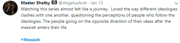 However, Messiah got a very different kind of attention and sparked a great many conversations! The series is challenging and thought-provoking in every way possible; creating a space for conflicting theories and debates.