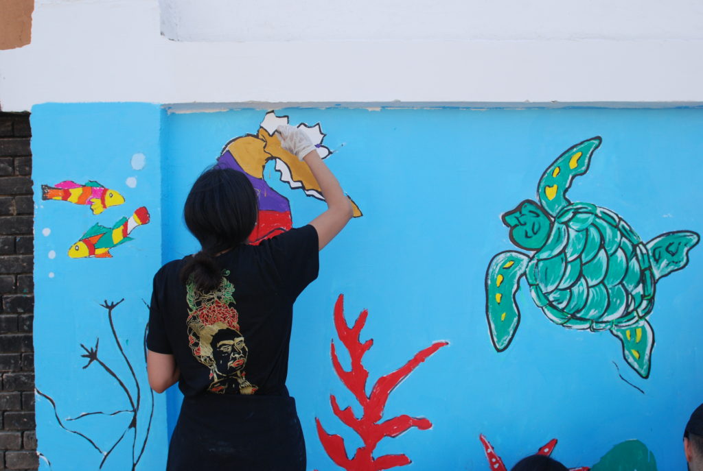 During their last visit before Eid, which was the last out of a series of Ramadan activities organized by “Spreading Positivity”, Neya invited volunteers and Scoop Empire, along with members of the community to paint a wall, beautifying the area and leaving an everlasting mark.