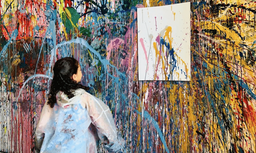 There, you can take a canvas, put it on a rotating table, and swirl every color of paint your heart desires. Or you can hang your canvas on the wall and squirt and throw paint at it. The options are endless, so come, have fun, and get creative.