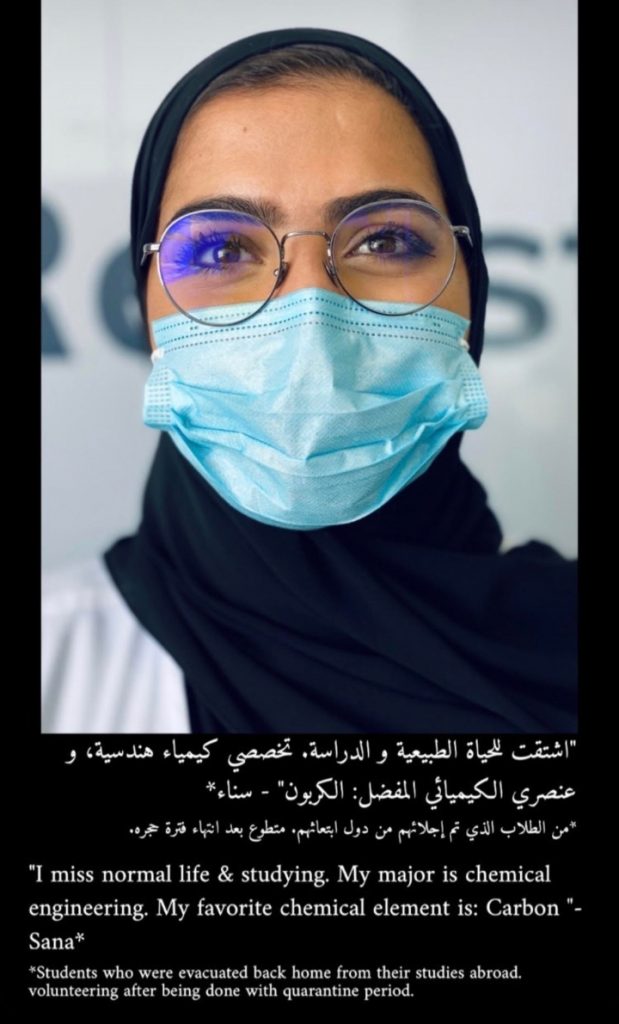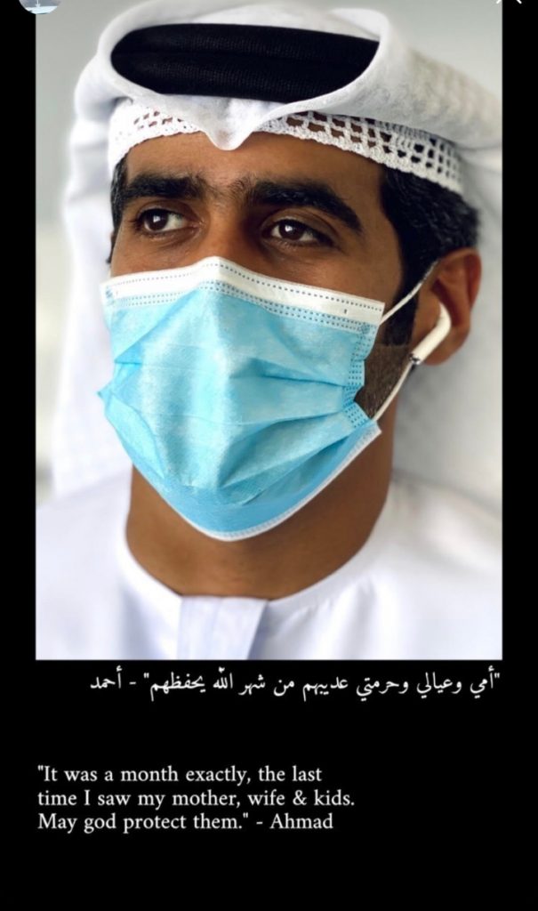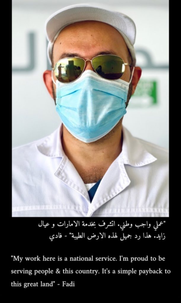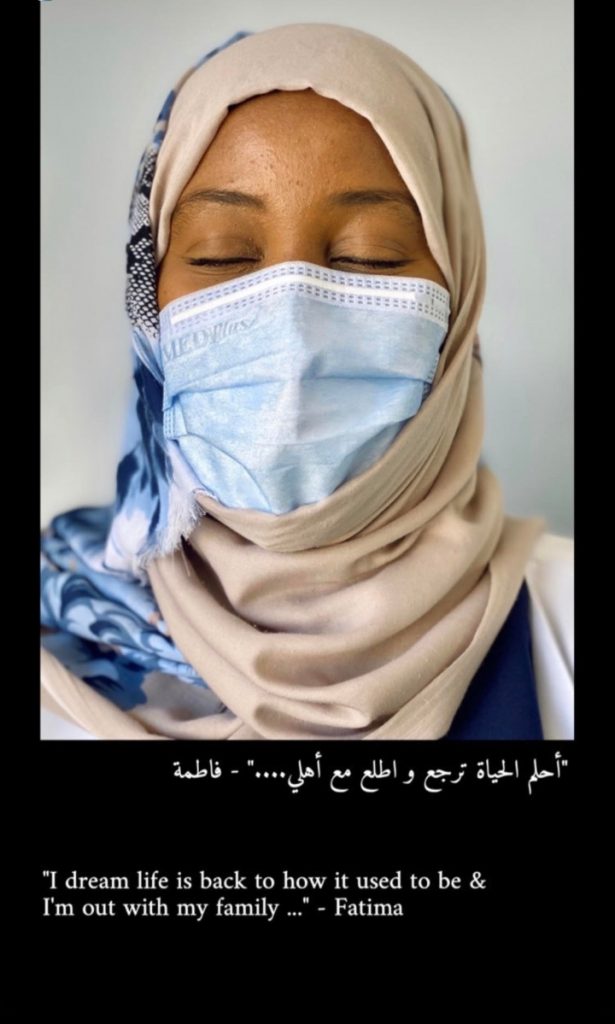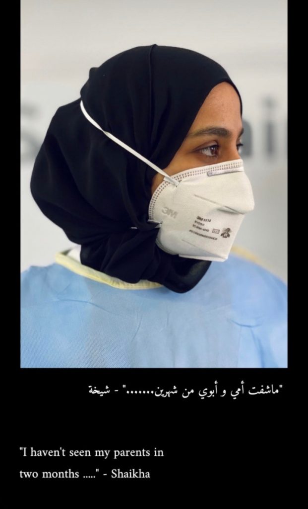 Noora Al Neyadi is an Emirati photographer who visited COVID-19 testing centers in Abu Dhabi and Al Ain, and spoke to the medical staff who are working day and night at these facilities. Using only her phone, she took portraits of each one separately, with only their eyes visible due to the face masks, and naming her project “Eyes Stories”.