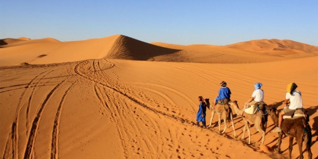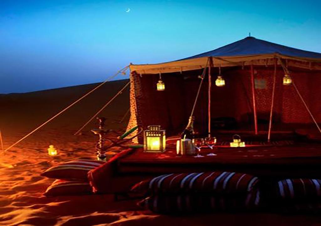 Choosing to spend a few days at this stunning camp means you’d get the chance to not only get lost in the beauty of the Sahara but also enjoy the campsite’s delicious food, adventures like sand-boarding, enchanting ambiance, and the impeccable service.