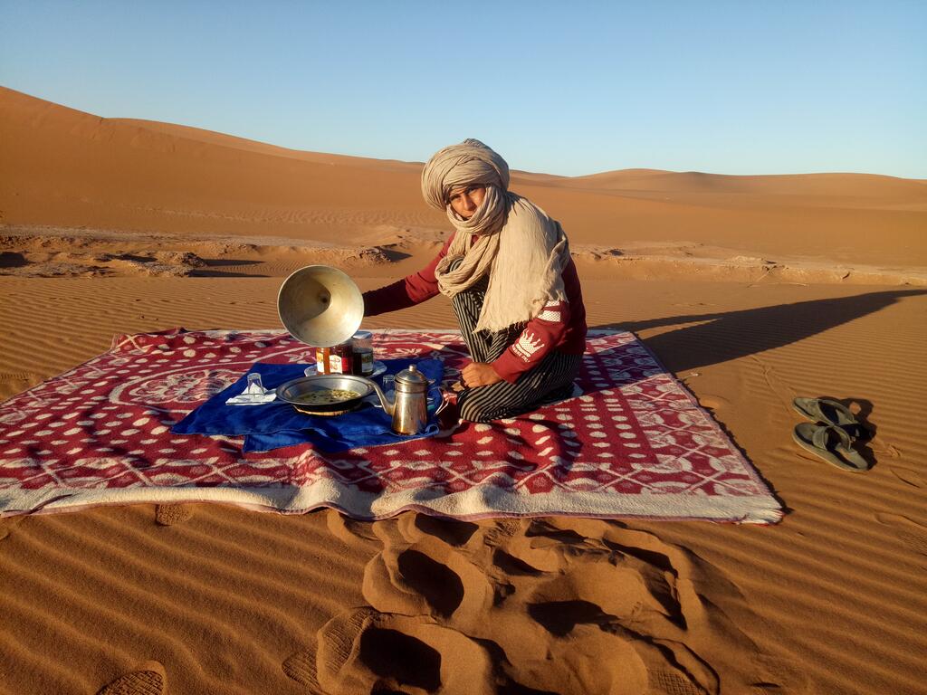 Sirocco offers accommodations, a restaurant, and a shared kitchen. The luxury tents also provide a seating area, a terrace, and ski-to-door access (yep, it snows too!). Just imagine yourself sitting in the middle of the desert in such an amazing setting eating delicious food while listening to some nice local music.