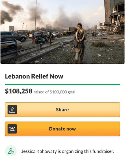 Jessica Kahawaty founded the Lebanon Relief Now Fundraiser with the goal of gathering donations to support Lebanon. She announced the fundraiser saying that she feels helpless watching her country drown with its ongoing catastrophe due to lack of resources, electricity, fuel, medications, or any necessities for the people. In addition to that, Kahawaty has also personally received many messages from the youth of Lebanon who spoke about their suicide attempts as they’ve lost their homes and any hope for the future.