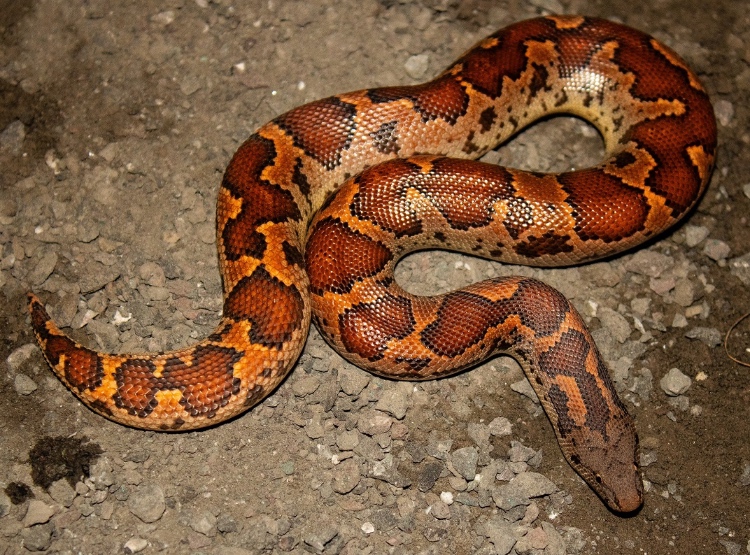 The Sand Boa has a maximum length of 65 cm long. It has bright, shining dorsal scales that are marked with brown and orange spots. The dorsal side of the head is where the eyes and nostrils are located. This snake has a short, pointed tail that ends in what resembles a claw. It has a home both inside and on the sand’s surface. According to Gulf News, It typically hunts at night and suffocates its prey. It eats tiny birds, rats, and lizards.