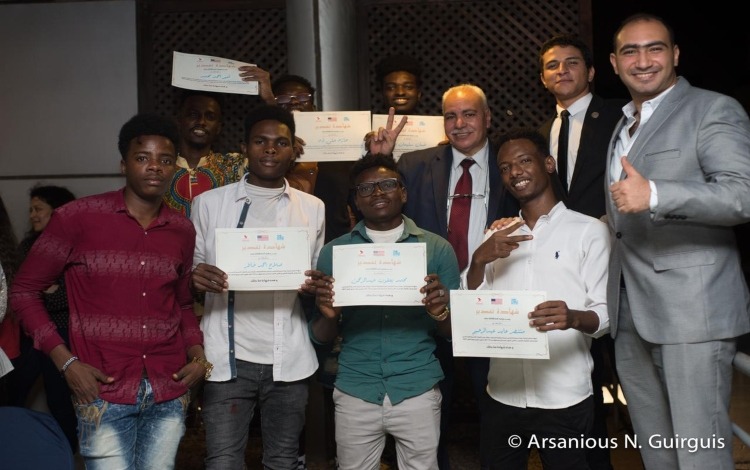 The project aims at empowering aged-out refugees in order to find the means and guidance for building up their skills, discovering new ones, and ultimately becoming eligible to support themselves financially, as well as addressing the protection and psychosocial needs for over 40 children seeking asylum. The refugee children were given various options to choose from in the fields of art, mechanics and tech, to name a few. On the final day of the project, the graduation ceremony took place at AUC’s Greek Campus where panel discussions were carried out by several influential and inspiring individuals from all walks of life in Egypt. Speakers spoke of the goals for sustainable development, sports for development, Egypt’s role in regards to refugees, the issues asylum seekers face while in their host country, and what more can be done. When asked on the role the American Embassy in Egypt partook in the project, Alexander Mclaren, Assistant Cultural Affairs Officer, said “we are a nation of immigrants” in regards to migrants being a vital source of human integration and humanity moving forward together.