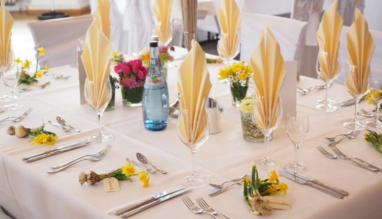 Buying linens to match your color concept is a must. From the tablecloths and napkins to your waiters’ aprons, everything must go with your theme. The way the table is set should be visually pleasing. Buy tableware that is comfortable to use while being attractive to the eyes.
