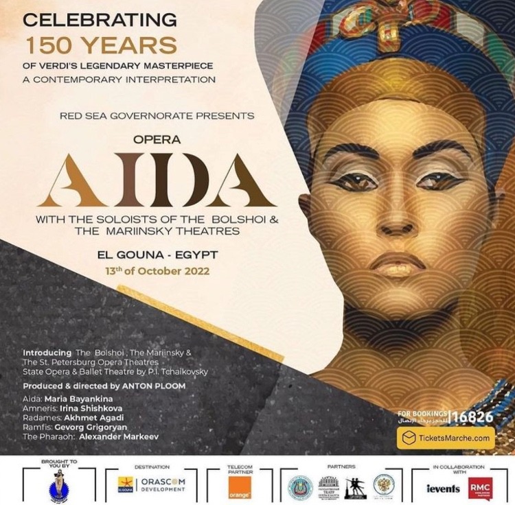 On Thursday, Oct. 13th at 9:00 PM, “Opera Aida” will be presented at El Gouna for the very first time in a contemporary setting as part of the 150th anniversary of Verdi’s masterpiece. In order to honor the magnificence of ancient Egypt, the show retells the legendary story from a modern viewpoint. Soloists from The Bolshoi & The Mariinsky Theatre will be giving a performance unlike nothing you have seen!