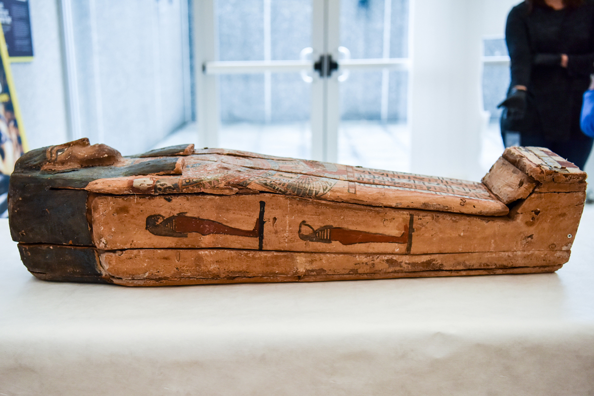 The items returned included a mummy hand from the 8th century BCE that had been represented as a movie prop (recovered by “Operation Mummy’s Hand”) and a child’s sarcophagus recovered from a Brooklyn garage in 2009.