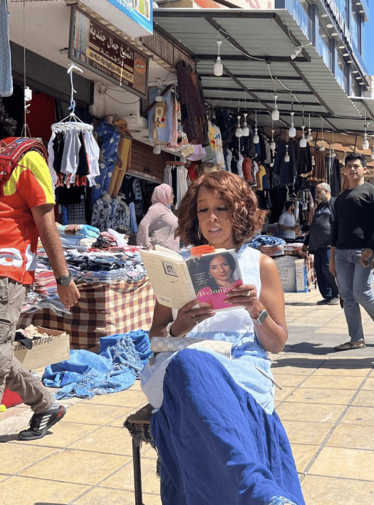 King also took to her Instagram to share a photo of herself in the hustle and bustle of Jordan’s markets as she cozied up with Michele Miller’s latest book, Belonging.