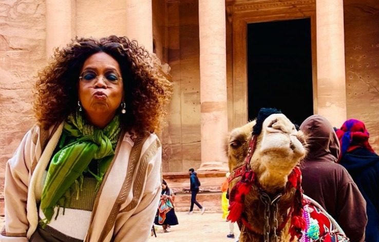 Sharing to her Instagram vibrant photos of her in Petra doing several excursions, Winfrey was seen riding a camel, visiting the site where John the Baptist baptized Jesus. In addition to galavanting across Indiana Jones’ picturesque boulders.