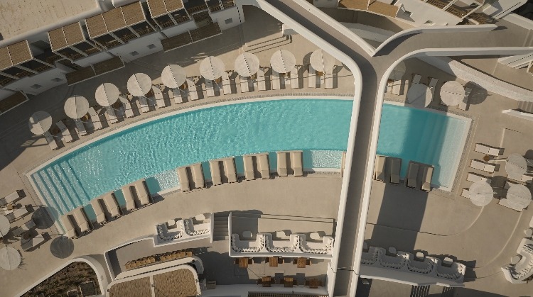 Next to the luxury Silversands, operates the modernist Yi Hotel. ORA’s ‘Yi Hotel, Mykonos’ is yet another euphoric and intimate hotel. It is a perfect spot for a serene time of detoxification and retreat. Each architectural detail, from the neutral colors of the exterior to the abundant conceptualization of wood, contributes to a luxurious experience.
