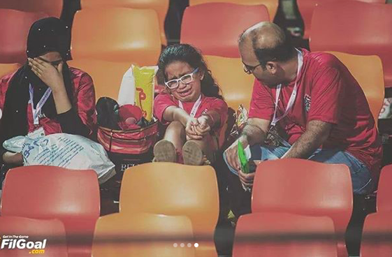 Photos have been circulating all day of fans at the stadium in absolute shock. One of the saddest scenes are parents trying to console their little ones who are still not used to the concept of losing.