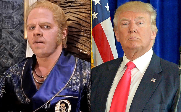 In Back to the Future II, Biff Tannen, the bad guy, had some interesting similarities to Donald Trump. Not just that both looked alike but both had gotten married three times and lived in mansions painted in gold! In the movie, Biff becomes a very successful businessman who after opening a 27 story casino got involved in politics. Sounds familiar?