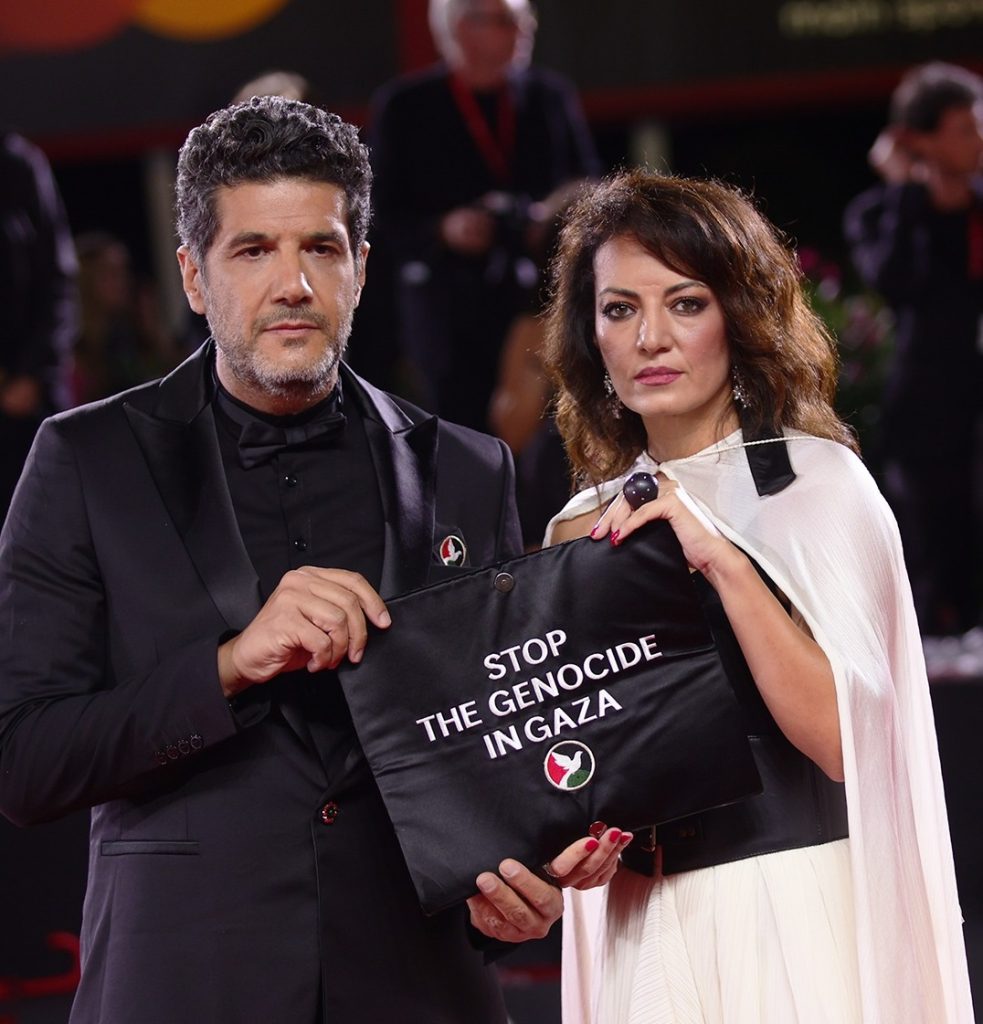 Some industry figures made their stance visible on the festival stage itself. Moroccan filmmaker Maryam Touzani held a sign reading “Stop the Genocide in Gaza” at her premiere, while Italian actor Roberto Zibetti described art as “an arsenal of peace.”