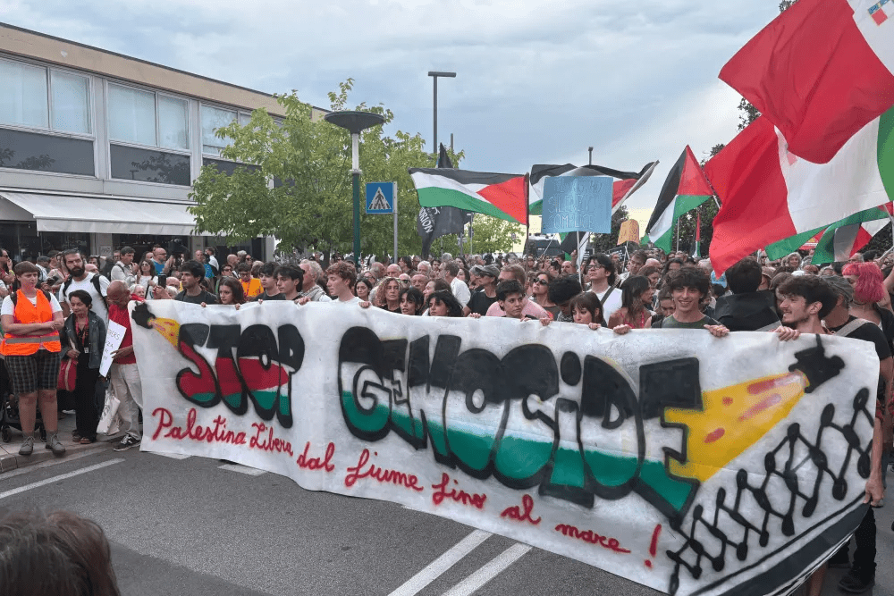 Placards reading “You are all an audience to genocide” captured the mood of the crowd. Protesters said that with so much global attention on Venice, it was the perfect moment for actors and directors to use their voices.