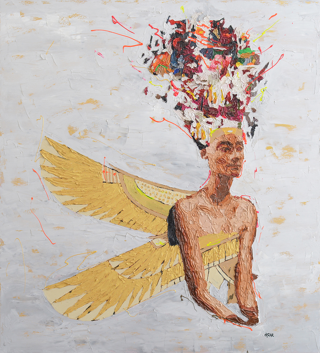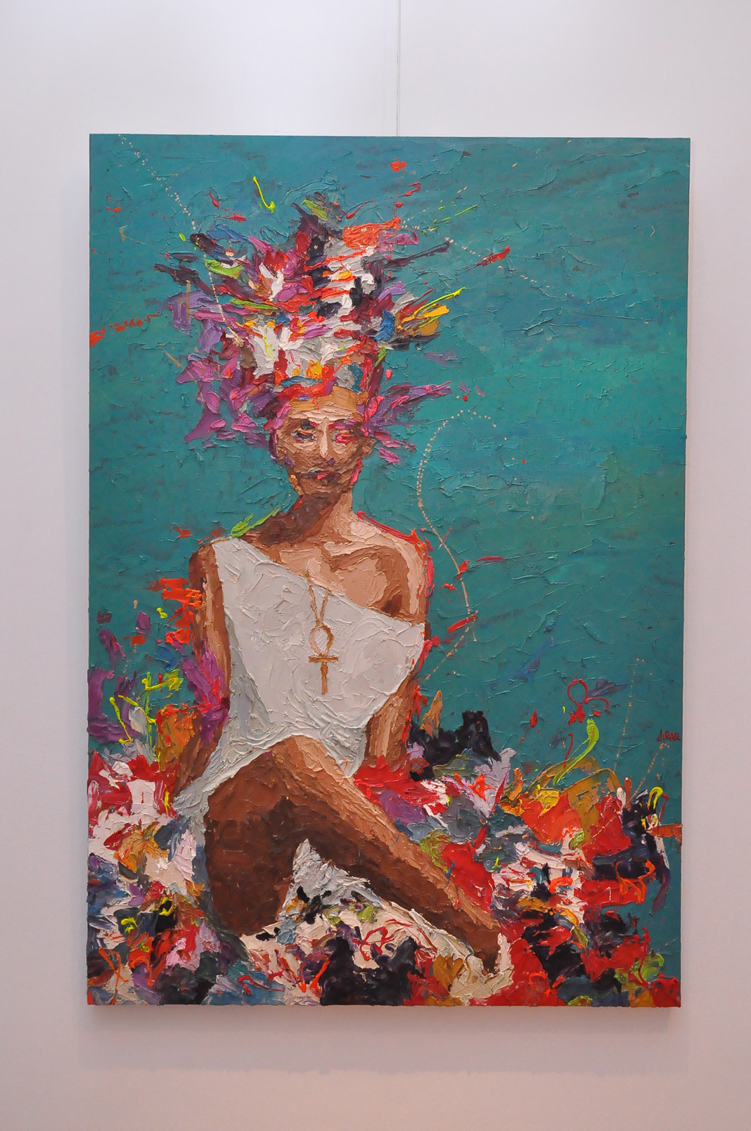 I think the whole series is quite powerful. The painting of Nefertiti with the wings of Isis is the closest one to my heart. It is half women, and half Goddess, powerful, but feminine. This particular work is a combination of dream and reality.