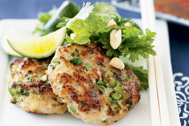 Place the fish in the bowl of a food processor and process until smooth. Add the coriander, corn flour, fish sauce, sweet chilli sauce and egg, and process until well combined.