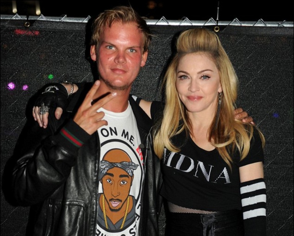 - Madonna announced on Instagram this week that she is working with Avicii on new music, captioning, “Doing some house work before heading to the studio with Avicii,” on a photo of herself in fishnets and a jeweled headband. The EDM star had previously remixed Madonna’s hit “Girl Gone Wild” but is instead known for working with up-and-coming artists rather than huge pop stars. Avicii will be performing next month at Atlantis Dubai, so here’s hoping we’re treated to a first listen.