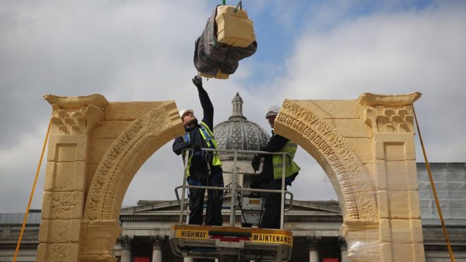 The replica will travel to cities around the world, as New York city and Dubai, after staying in London for three days. The plan is for the arch to find a permanent residence next to the originally destroyed one.