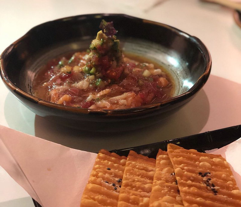 Our favorite of the starters and salads was the Katsuya Ceviche (AED 85), a light and refreshing blend of Sashimi and citrus ponzu served with fried crisps on the side.