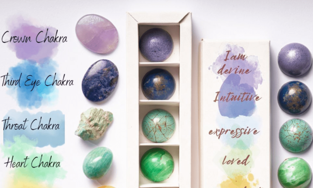 That is why, at their store, you’ll find their glossy multicolored crystal and chakra-inspired Belgian chocolates boasting flavors and colors that benefit each chakra and its matching stone or Belgian chocolate thins shaped as popsicle sticks featuring intricate 3D etchings.