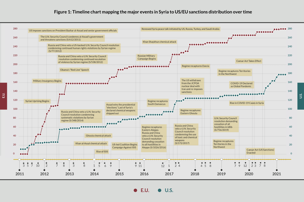 The EU imposed comprehensive sanctions on Syria starting in 2011, targeting key sectors, including Syrian oil exports, financial channels, and individuals associated with Assad’s government. The sanctions were part of the EU’s response to the Syrian Civil War, aiming to pressure Assad’s regime and its supporters.