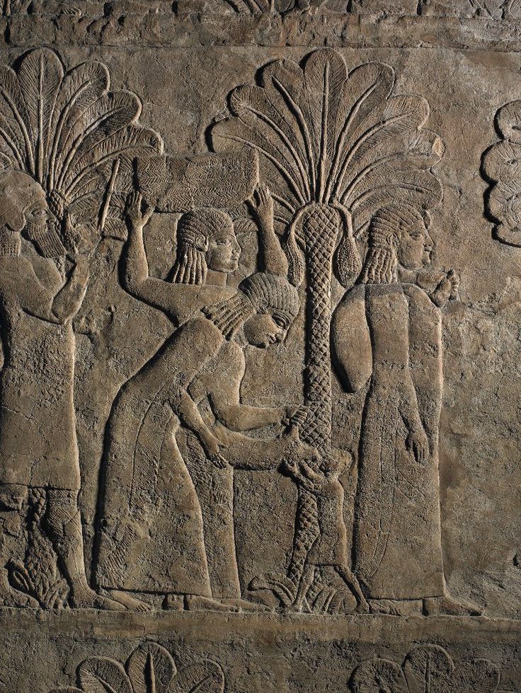 In Mesopotamian art, the date palm was frequently shown in connection with gods and goddesses, particularly those linked to agriculture and prosperity, according to the Food and Agriculture Organization (FAO).