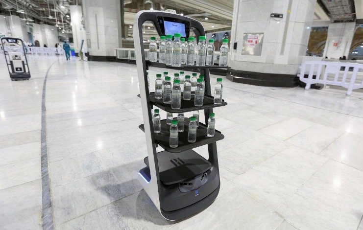 Another robot that is making a return is the four-wheeled tray robots that move around the Grand Mosque and other holy sites during Hajj offering Zamzam water. According to The National, the Kingdom aims to distribute about three million bottles a day in Mecca’s Grand Mosque, and a million in other holy sites.