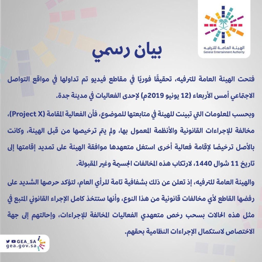 The opening of the alcohol-free nightclub was halted as authorities claimed it violated legal proceedings. The country’s General Entertainment Authority (GEA) tweeted that the event had not been licensed and described it as a violation.