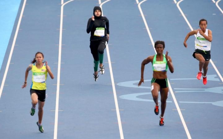 Kariman Abuljadayel, 22, is the first Saudi woman to compete in the Olympics 100 metres. Following in the footsteps of Sarah Attar, the first Saudi woman ever to compete in the Olympics in 2012 after the Kingdom lifted the ban on women competing in the Olympics, Abuljadayel came in seventh in her preliminary heat with a time of 14.61 seconds.