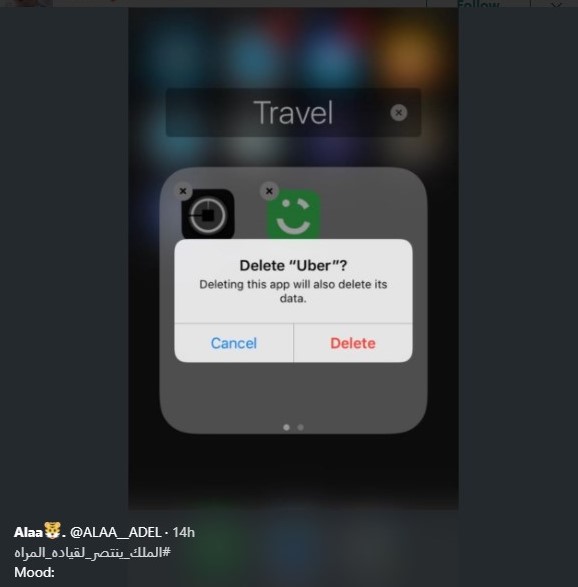 Others shared memes and GIFs to show how happy they were. Twitter user @ALAA__ADEL shared a screenshot of her deleting the apps Uber and Careem as a way to celebrate this important announcement.