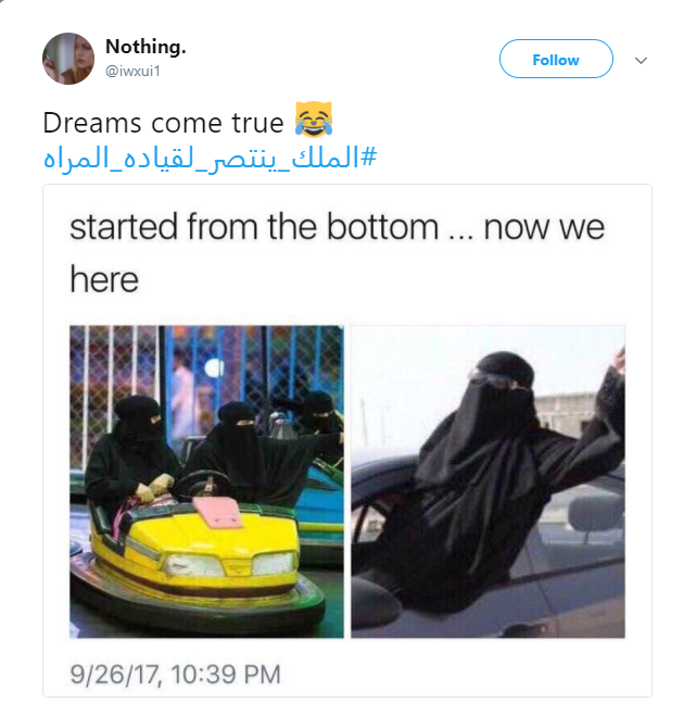 Even though the historic decision won’t take effect until June 2018, Saudi women on Twitter are celebrating after years of fighting for their right to drive.