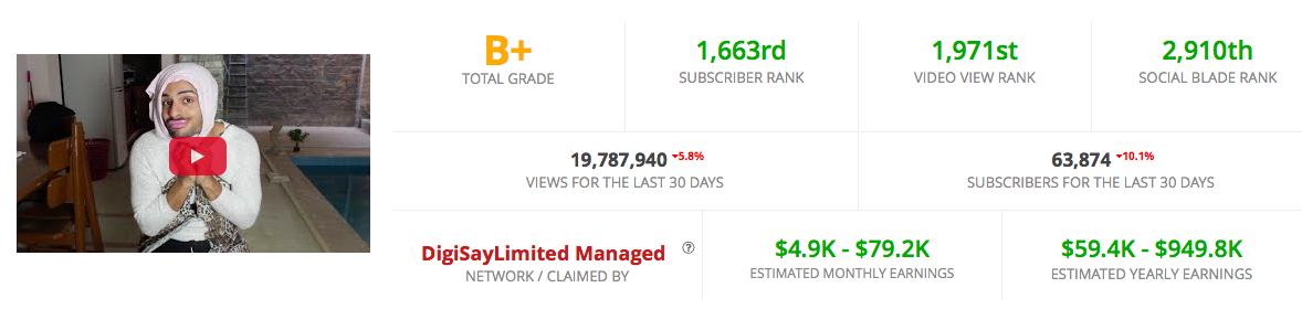 There’s a website called Social Blade that tracks YouTube’s stats. It tells you everything you need to know about anyone you follow, from subscriber and video view ranking to an estimation of monthly and yearly earnings. We have to admit we were kind of curious about Shady Srour specifically, since he is the most followed and watched person in the Egypt.