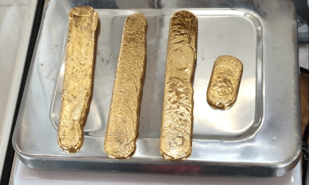 He managed to hide 972 grams of four flattened pieces of gold up his rectum while a second man onboard hid another 1.47 kilos of gold. Both were caught by authorities.