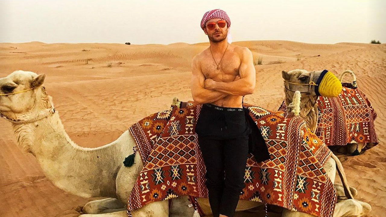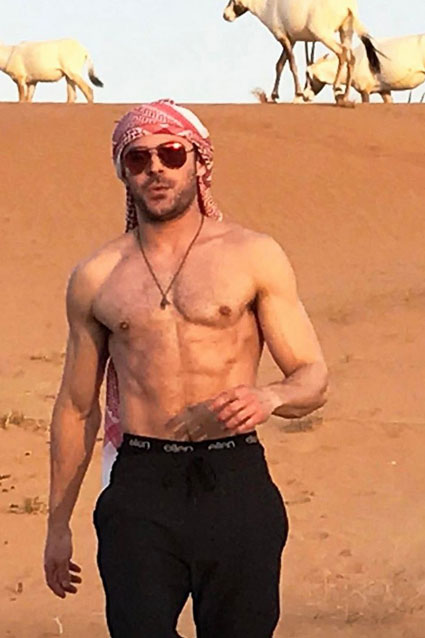 But we’re not here to talk about his latest fragrance, we’re here to talk about his little adventure in the desert. ET Online have released a few pictures of Efron in the Dubai desert, and oh boy, you’ll need a fan (or AC) for this one.