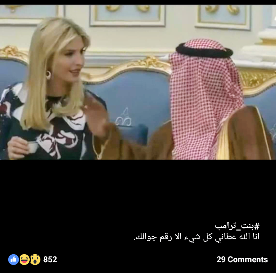 via: Facebook. The caption reads “The current interaction between Saudis and Ivanka.”