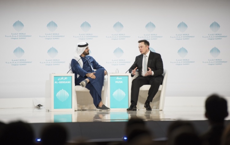 Mohammad Al Gergawi interviews Elon Musk during World Government Summit in 2017