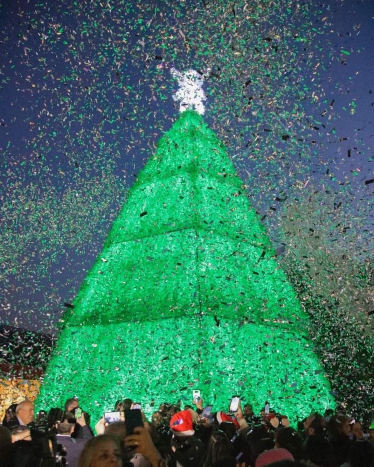 In celebration of the season, an Eco-friendly Christmas tree was lit by the banks of Lake Bnachii, Zgharta District, Lebanon, as part of the “Christmas by the Lake” festival. After a two-year absence, the 15th edition of the Christmas Festival featured several Lebanese officials and environmental activists who put up the tree. Distinguished by its environmental dimension, this Christmas tree was made from thousands of plastic bottles and materials that can be recycled to send a message from Lebanon to the whole world. This message conveyed that “despite the difficulties, we can still celebrate, and that the land and the environment cannot be compensated if we lose them.”