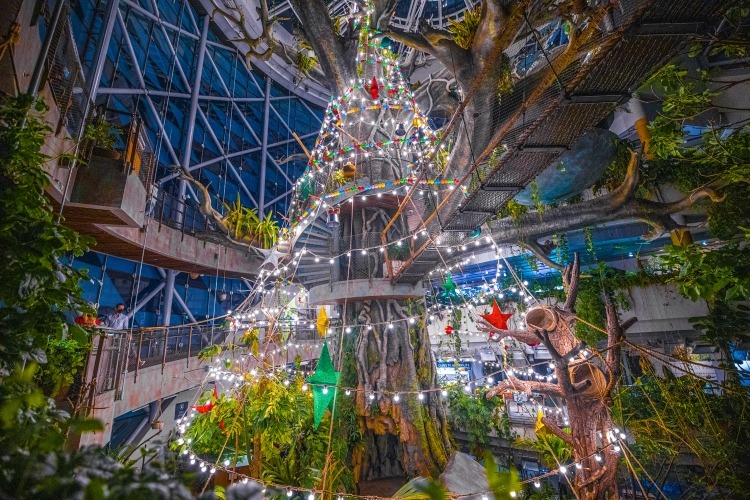 On Dec. 15, 2020, Dubai’s City Walk indoor tropical rainforest decorated its Kopak tree structure, which rises directly through the biodome and is now the largest tropical Christmas tree in the country. To complete the image, 400 meters of tinsel, 60 gigantic decorations and baubles, and 300 meters of Christmas lights were used. The best part is that every single tree decoration was produced from recyclable materials and is safe for the environment.