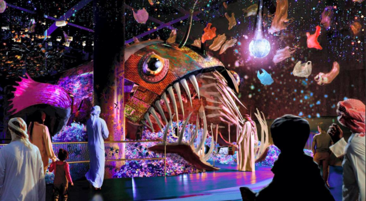 From an interactive walk in an Arabian Wadi that used to be inhabited by wild animals, like cheetahs and elephants, to a deep sea fish suffering from ocean’s waste; the exhibition plans on shedding light on the plastic crisis and sustainability with huge colored models. In addition to a balance maze, where visitors have to work together to restore earth’s balance.
