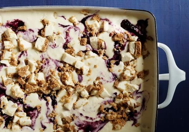 10) Crumble the cracker mixture in a large container, layer the ice cream, the crackers mixture, and blueberry sauce and freeze.