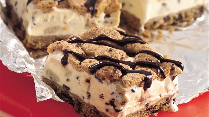 3) Drizzle fudge topping over ice cream; cover and freeze until set.