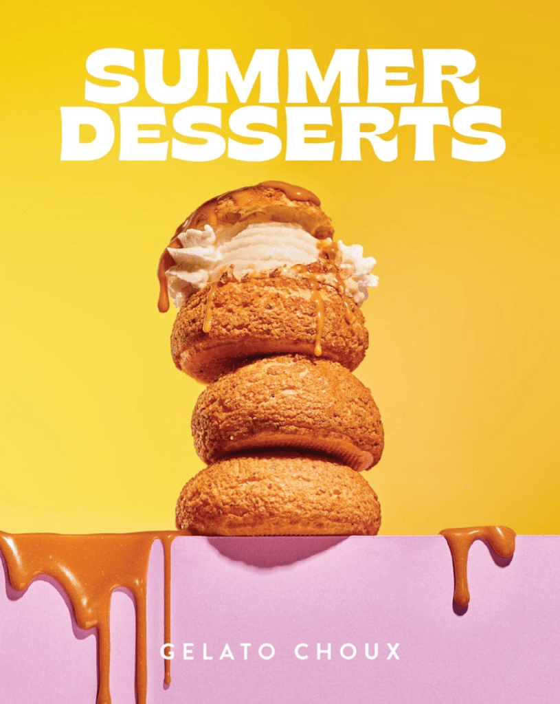 Take the flaky, buttery layers of a classic mille feuille, add creamy ice cream in between, and you have a dessert hybrid we’re genuinely grateful exists. The contrast between the crisp pastry and cold filling makes each bite a little textural love story — and a perfect grab-and-go summer indulgence from Soufflé.